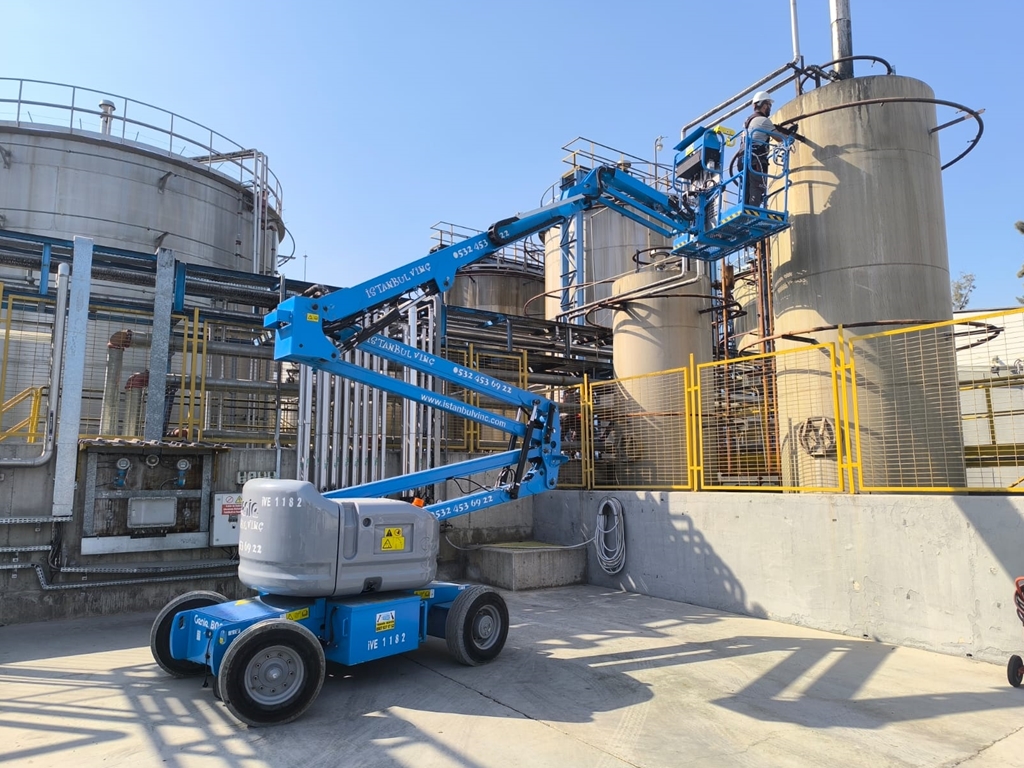 Tavan ekipmanlarının bakımı, aydınlatma montajları ve hat üstü kontroller; eklemli platformlarla üretimi durdurmadan güvenle gerçekleştirilebilir.