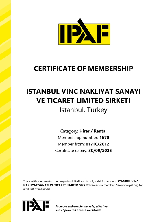 Biz İstanbul Vinç olarak 2012 yılında IPAF üyesi olduk.