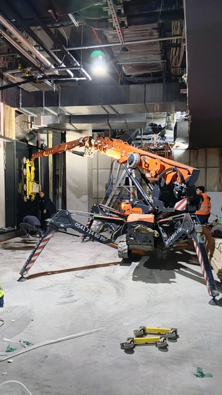Bu nedenle cam montajı projelerinde genellikle örümcek vinç + makaslı platform kombinasyonu tercih edilmelidir.